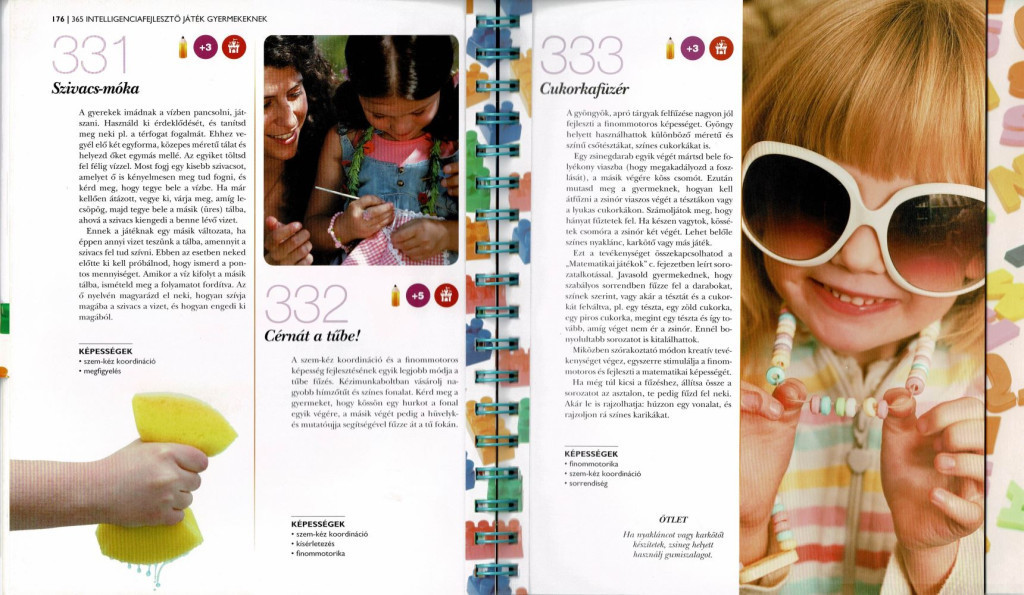 Ne törd tovább a fejed! Ebben a könyvben az év minden napjára találhatsz olyan játékos feladatot, amely segítségével számos dologra megtaníthatod gyermekedet. A tevékenységeket három éves kortól ajánljuk, és aszerint csoportosítottuk, hogy mely területen hatnak leginkább: egyaránt találhatsz itt nyelvi, matematikai, tudományos és testi képességeket fejlesztő játékokat. A tevékenységek elején található kis ábrák megmutatják, hány éves kortól ajánljuk, a lakásban vagy a házon kívül végezhető, rövid ideig tart, vagy hosszabb időt vesz igénybe. Találhatsz köztük közismert játékokat, de teljesen eredetieket is, amelyek segítségével észrevétlenül segítheted a gyermekedet a fejlődésben.
