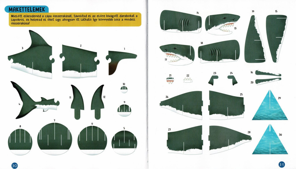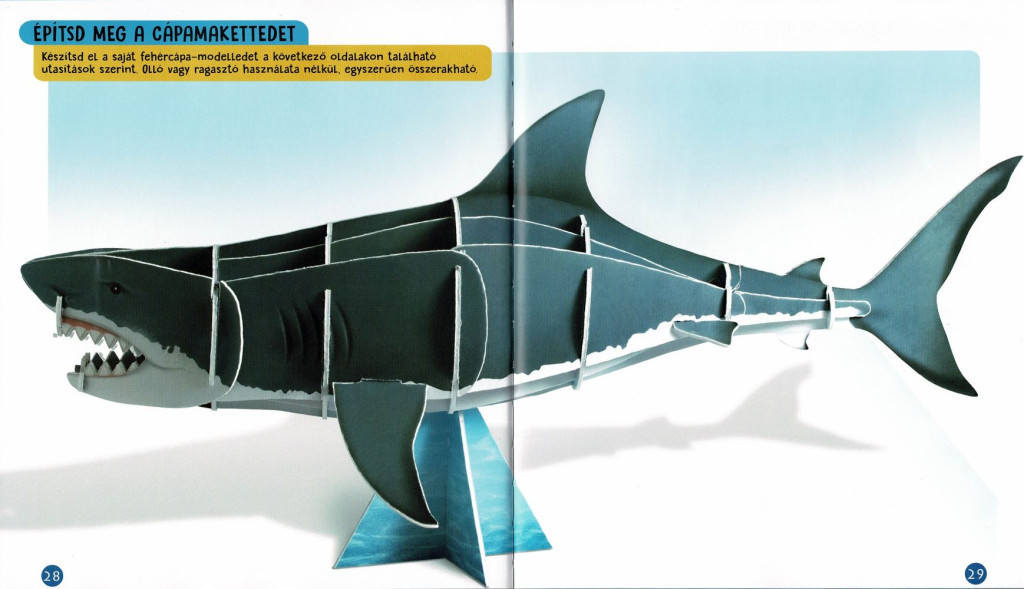 A könyv különlegessége, hogy egy részletes útmutatóval ellátott 3D-s makett is található benne, amellyel saját cápamodellt építhetünk. Ez az interaktív ismeretterjesztő könyv tökéletes választás minden fiatal felfedező számára, aki szeretné jobban megérteni az óceánok