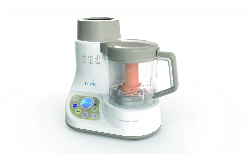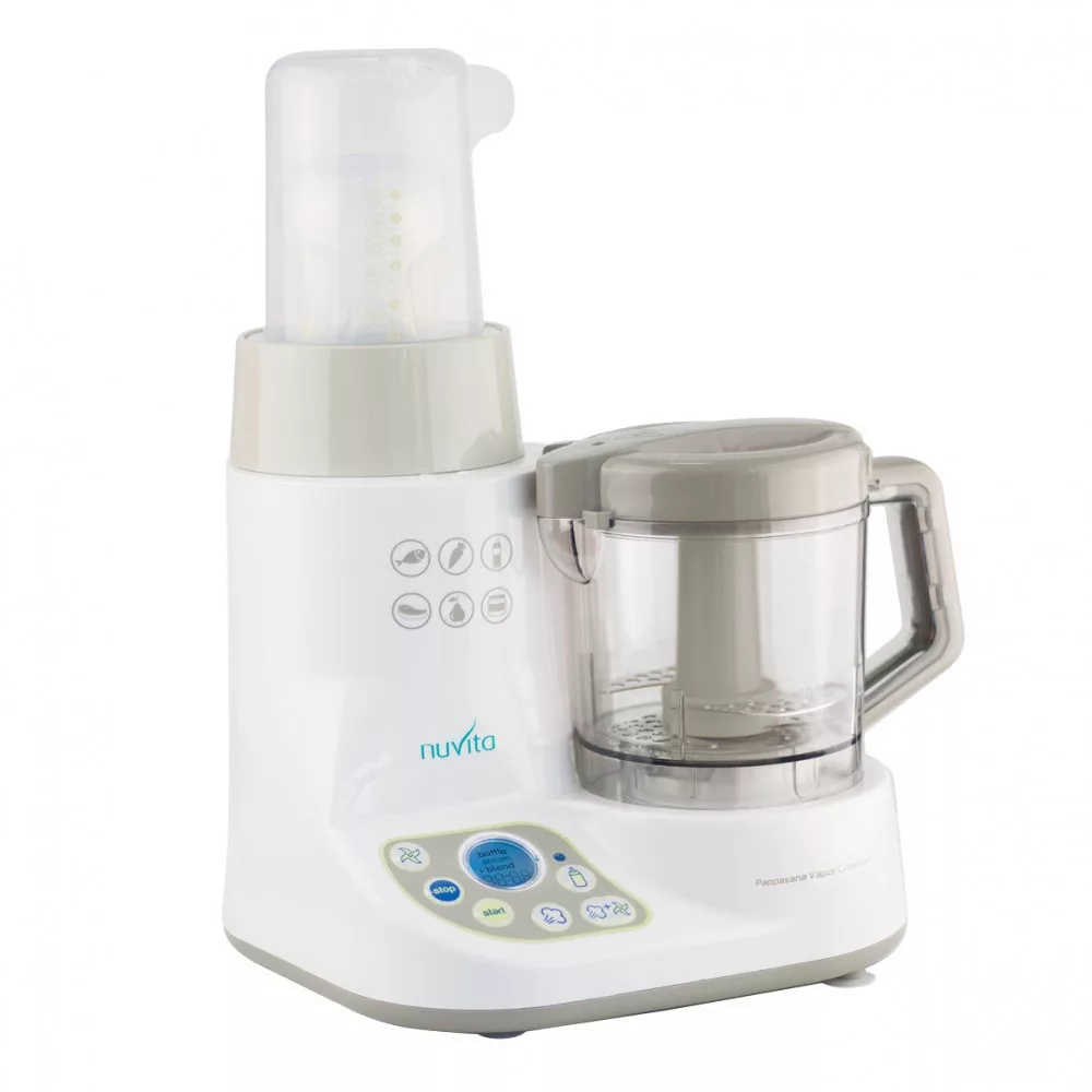 • Mini élelmiszer feldolgozó, cumisüveg melegítő és sterilizáló a Nuvitától! A gépen lehetőség van arra, hogy minden funkciót külön lásson el, vagy mindent egyszerre, mint főzés közben, amikor megfőzzük az ételt az összes hozzávalóval.