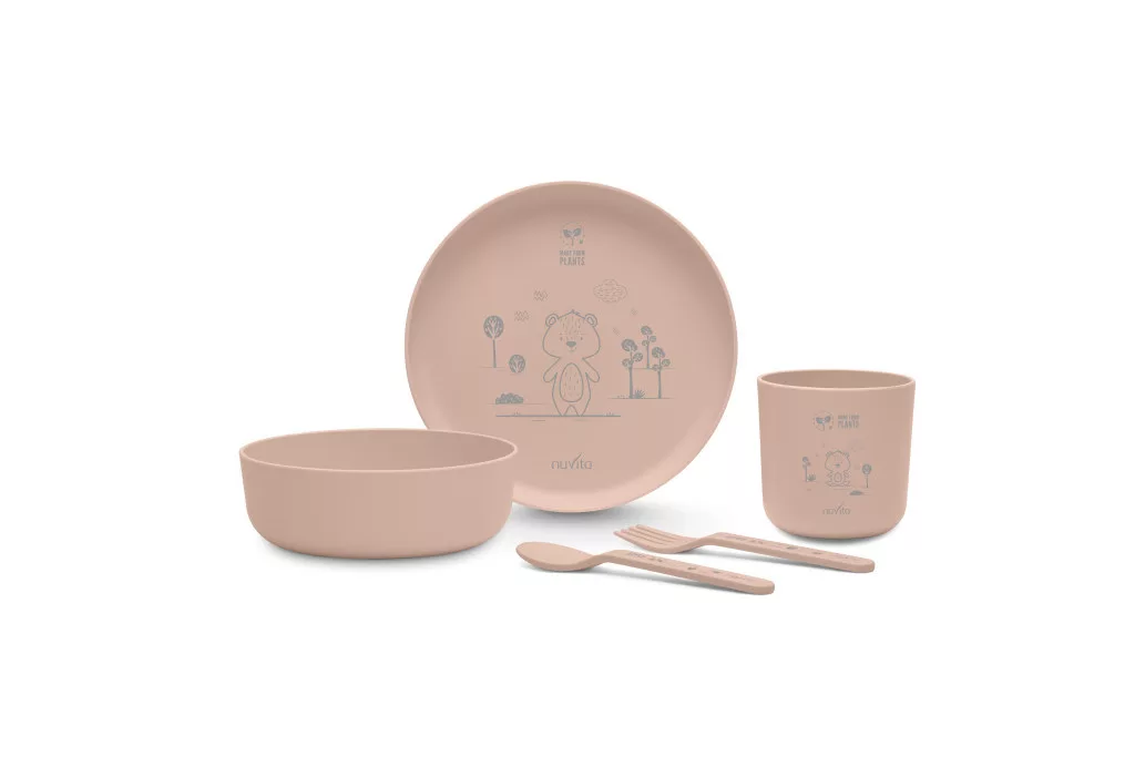 A Nuvita bioplasztik etető szettje tökéletes megoldás a hozzátáplálás időszakára és azon túl is. A magas peremű tányér és tál megakadályozza a fröccsenéseket, míg a könnyen megfogható pohár és evőeszközök elősegítik a gyerekek önállóságát az étkezések során.