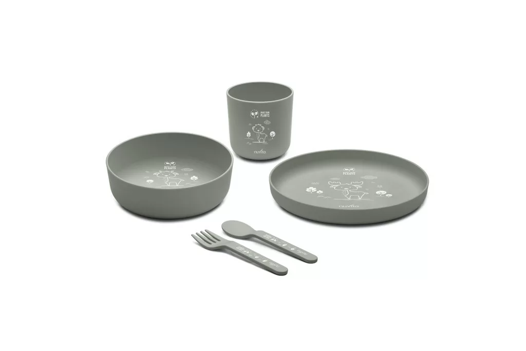 Teljes étkészlet bioplasztikból az önálló étkezés támogatásához