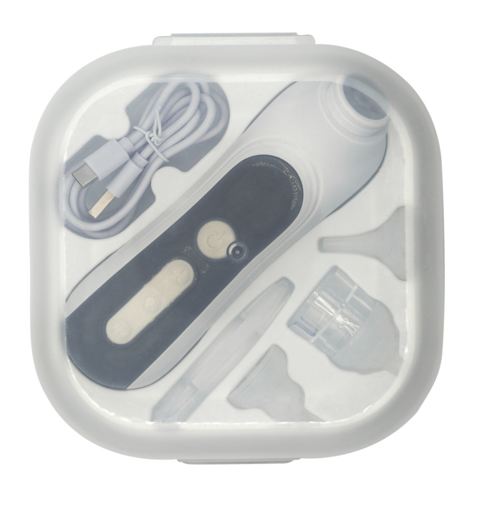 • Praktikus tároló: Az eszközhöz tartozik egy higiénikus, merev tok, amelyben az orrszívót, tartozékait és a töltőkábelt tisztán és kényelmesen tarthatja.