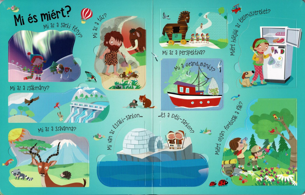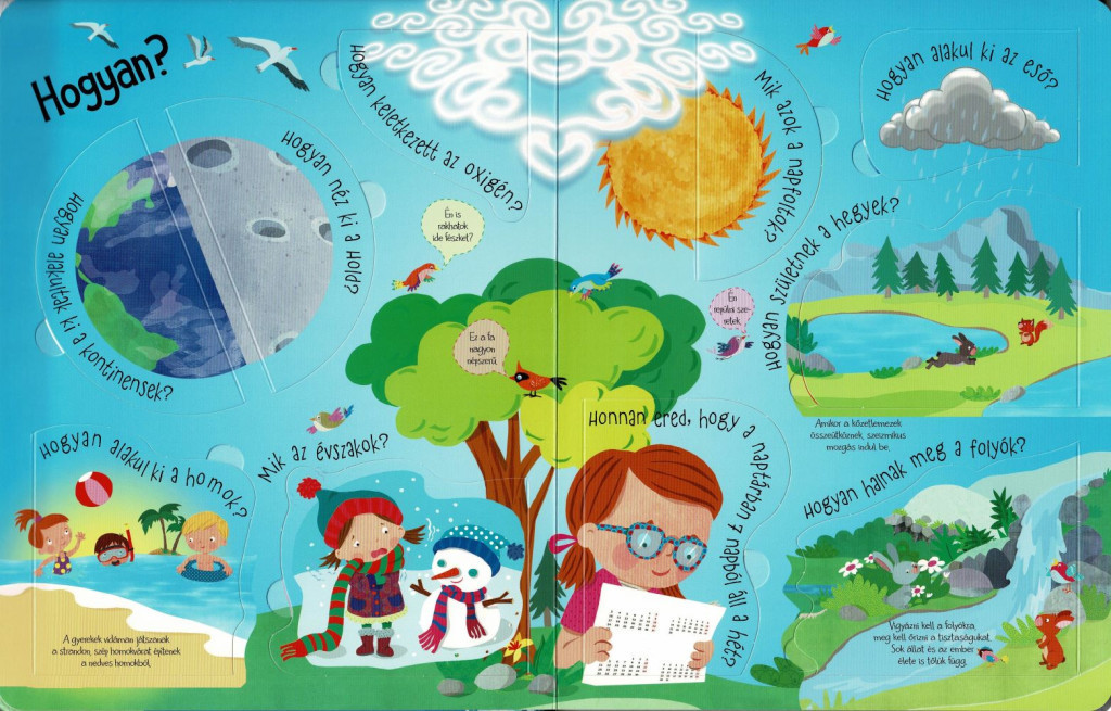 Ez a könyv nem egy hagyományos ismeretterjesztő mű: a kihajtható ablakok révén a gyerekek aktívan fedezhetik fel a világot, kérdéseket tehetnek fel, és saját tempójukban tanulhatnak. A könyv olyan kérdésekre ad választ, amelyek a kíváncsi gyermekeket foglalkoztatják, és segít nekik megérteni a minket körülvevő világ működését.