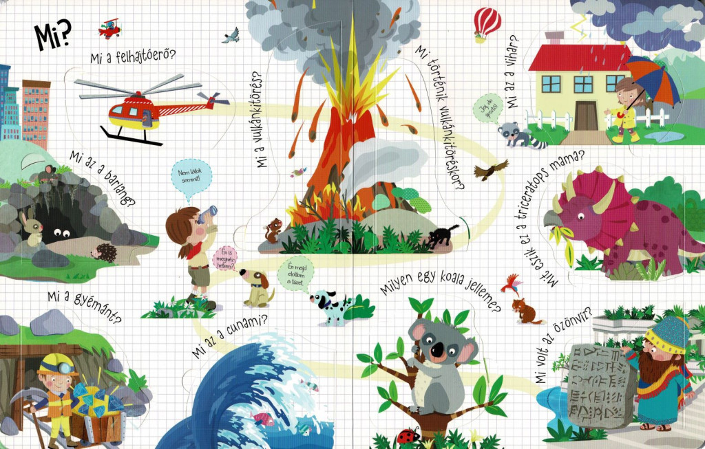A Nyisd ki és fedezd fel – A világ egy izgalmas, interaktív ismeretterjesztő könyv gyermekek számára, amely lenyűgöző módon mutatja be a természet, a tudomány, a földrajz és a történelem legizgalmasabb kérdéseit. Az aprólékosan illusztrált oldalak és a különleges kihajtható ablakok segítségével a kis olvasók nem csupán olvashatnak a világ csodáiról, hanem szó szerint „kinyithatják” az egyes témákat, hogy mélyebb betekintést nyerjenek a Föld titkaiba.