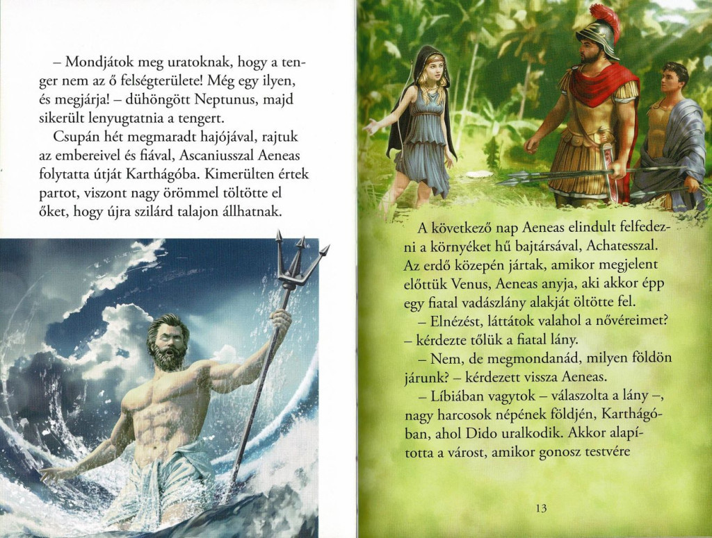 Aeneas, a trójai hős története azzal kezdődik, hogy elmenekül az égő Trójából. Útja Itália felé vezet, ahol számtalan kaland és megpróbáltatás vár rá és társaira. Az eposz bemutatja Aeneas bátorságát, kitartását és vezetői képességeit, amelyek révén végül megalapítja a rómaiak jövőjét. Az út során olyan témák jelennek meg, mint a barátság, az önfeláldozás, a szerelem és a harc, amelyek mind hozzájárulnak a történet mélységéhez és gazdagságához.