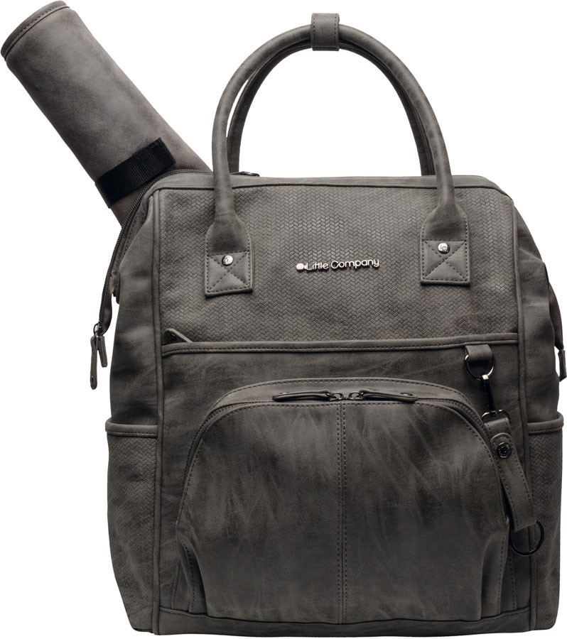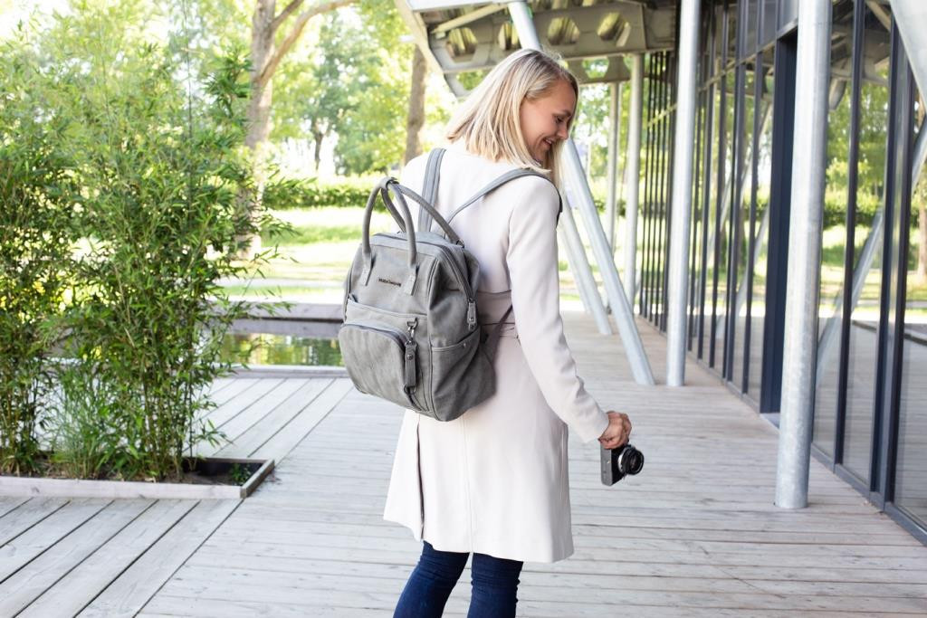 A fő belső tárhelyen belül található hét praktikus kisebb rekesz, egy másik cipzáras zseb és pelenkázó alátét ugyanazon anyagból. A fő rekesz egy kétoldalas cipzárral van ellátva, és kicipzározásnál nyitva marad egy speciális csatnak köszönhetően. Itt található további kettő tároló hely az elülső oldalon és további kettő az oldalán. Két hátsó pánt kényelmes viselést tesznlehetővé. A babakocsi pántokkal, amelyek a csomagolás részei a hátizsákot könnyen fel lehet erősíteni a babakocsihoz is. Plusz klasszikus viselete mint táska is lehetséges a két rövid fülnek köszönhetően. Röviden összefoglalva, a tökéletes pelenkázó hátizsák az összes kirándulásokhoz!