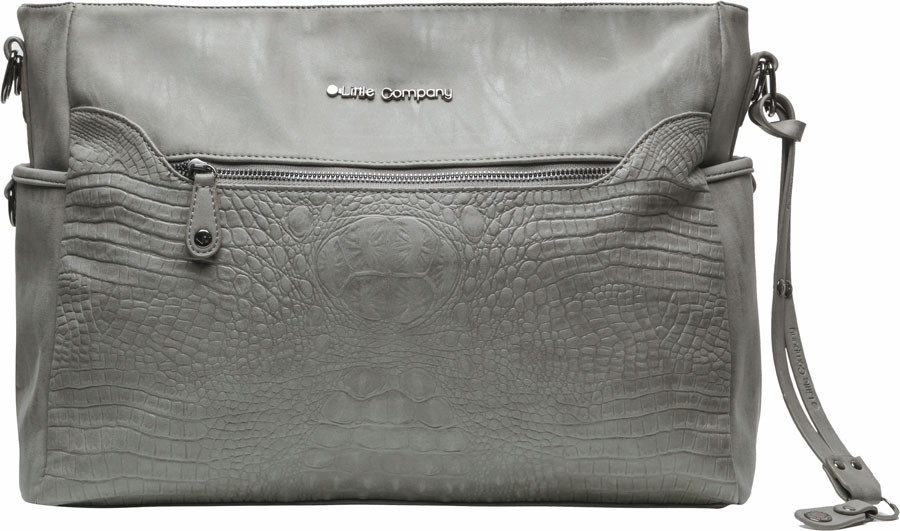 Stílusos és praktikus pelenkázó táska a Little Company Copenhagen Croco krokodil mintával. A táska egy nagy fő rekesszel rendelkezik, melyben további hét praktikus rekesz található, elegendő minden tárgyra. A fő rekeszen kívül van még az első és hátsó részben két kisebb zseb telefonra, rúzsra vagy kártyákra. Ezen kívül két oldalsó zseb cumisüvegre vagy alátétre. Rendkívül praktikus vállpántokkal rendelkezik. Nincs már tovább szüksége pelenkázó táskára? A copenhagen ideális notebook táska is.