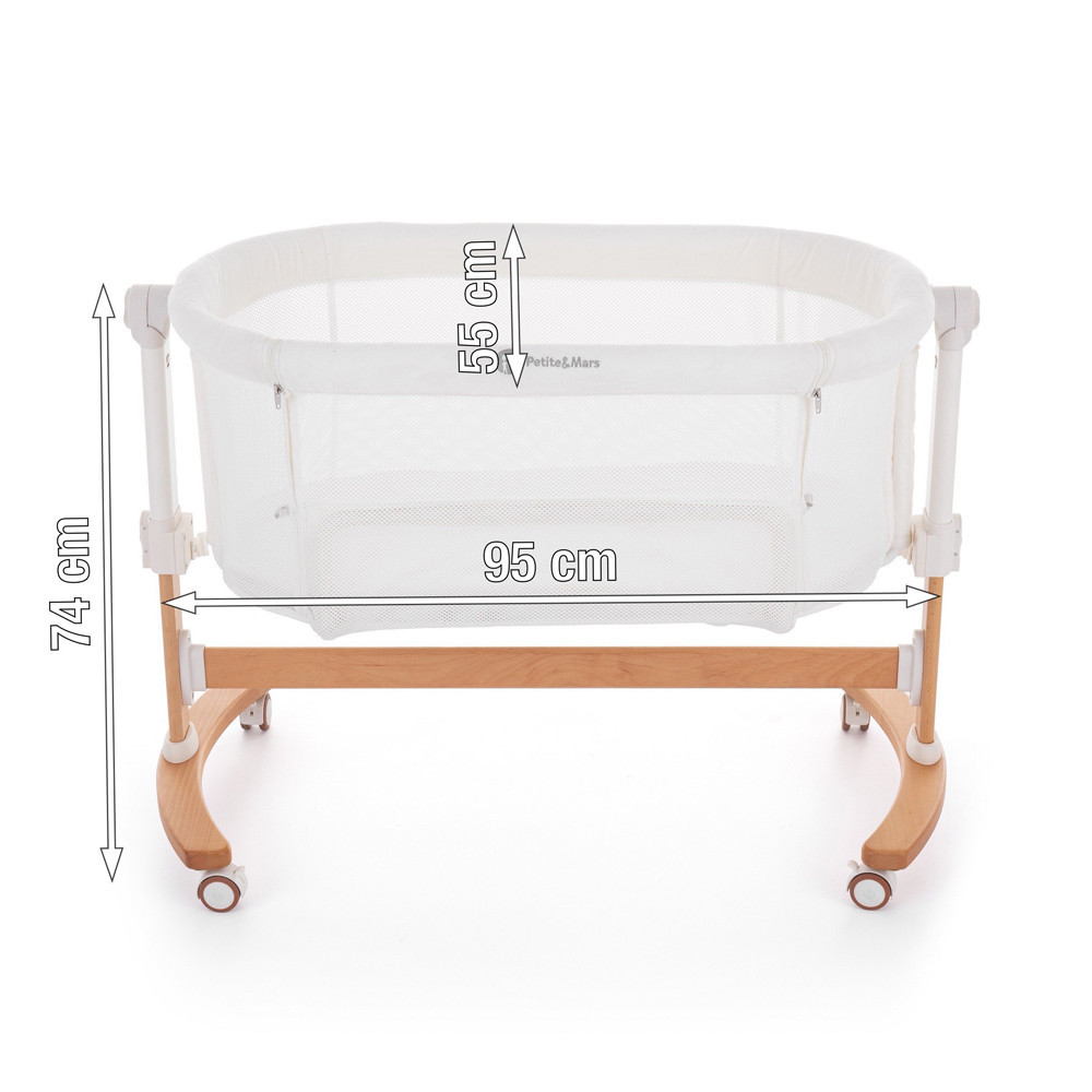 • A kiságy magassága 5 pozícióban állítható, így könnyen alkalmazkodik a szülői ágy magasságához (56,5-68,5 cm-es matracmagasságú ágyakhoz alkalmas)