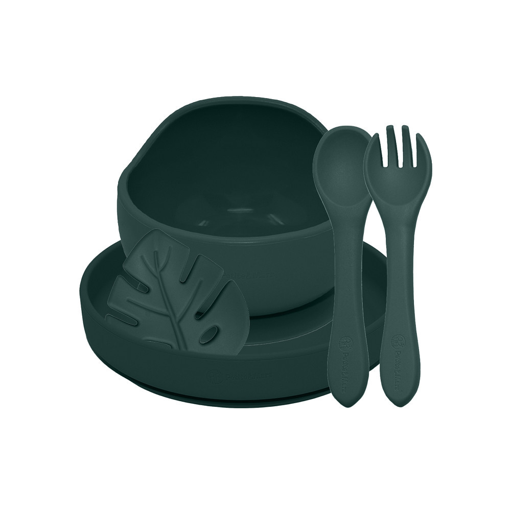 Petite&Mars Szilikon étkészlet, 4 db, Take&Match, Misty Green, 6 hó+