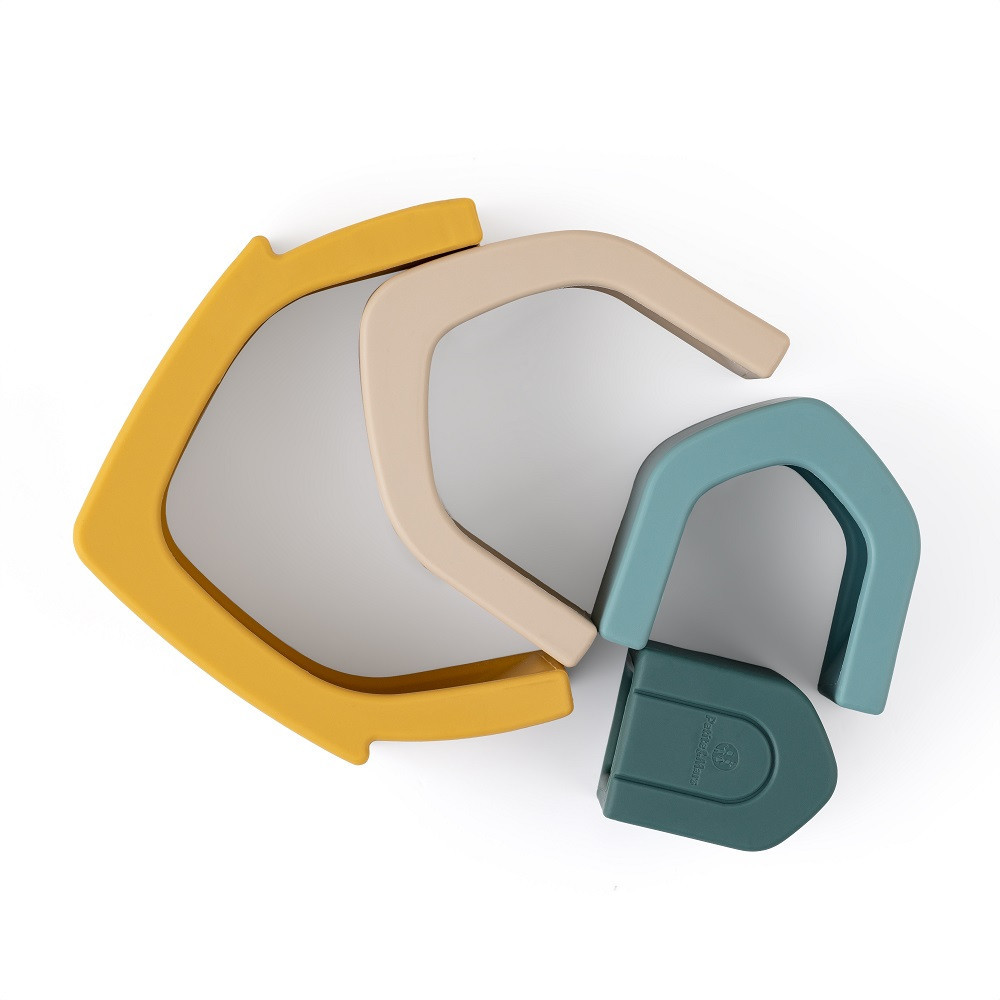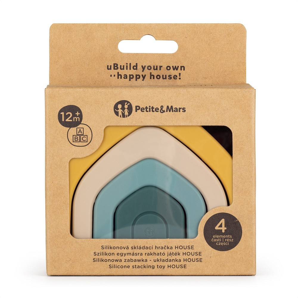 Építsd meg saját vidám házadat! A HOUSE szilikonból készült építőjáték négy íves elemből áll, amelyek egymásra helyezve egy kedves kis házat alkotnak. Az építőjáték felkelti gyermeked érdeklődését, kellemes és lebilincselő módon összpontosítja a figyelmét, és megtanítja őt a kreatív gondolkodásra.