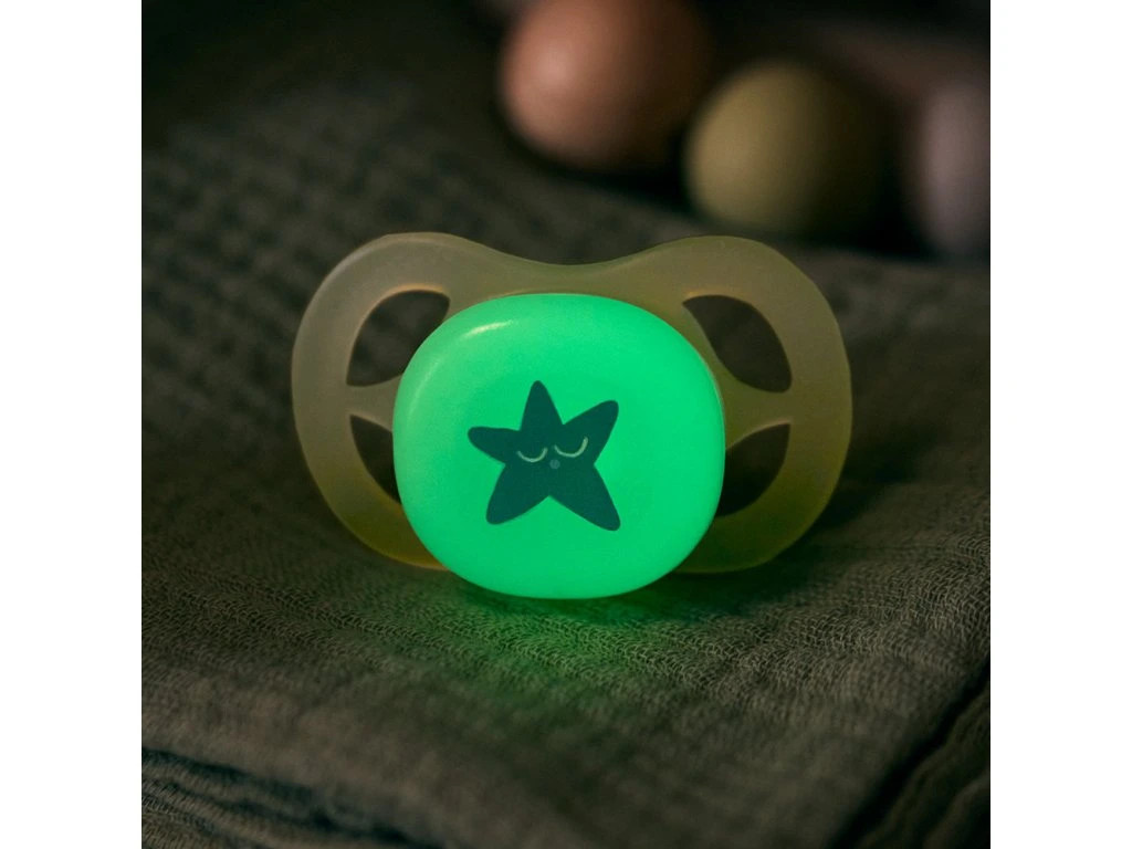 A Philips AVENT Ultra Soft éjszakai cumi kifejezetten az újszülöttek érzékeny bőréhez készült, extra puha kialakítással és világító fogantyúval, így a sötétben is gyorsan megtalálható – akár félálomban is.