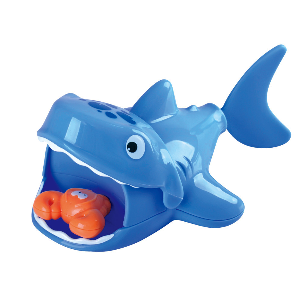 Vízen lebegő éhes cápa, aminek a szájában, zsinóron lévő rákocska kihúzását, majd elengedését követően a cápa farokuszonya elkezd gyorsan ide-oda mozogni, amelynek hatására a vízben a cápa előre halad, a zsinór elkezd behúzódni a cápa szájába és amint a rákocska a cápa szájához ér, a cápa bekapja azt.