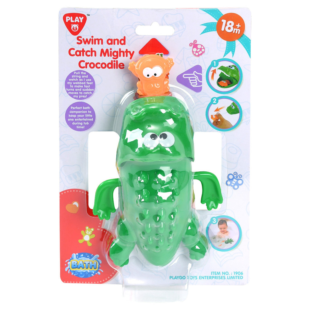 Vízen lebegő éhes krokodil, aminek a szájában, zsinóron lévő kis béka kihúzását, majd elengedését követően a krokodil elülső lába elkezd gyorsan körbeforogni, amelynek hatására a vízben a krokodil előre halad, a zsinór elkezd behúzódni a krokodil szájába és amint a kis béka a krokodil szájához ér, a krokodil bekapja azt.