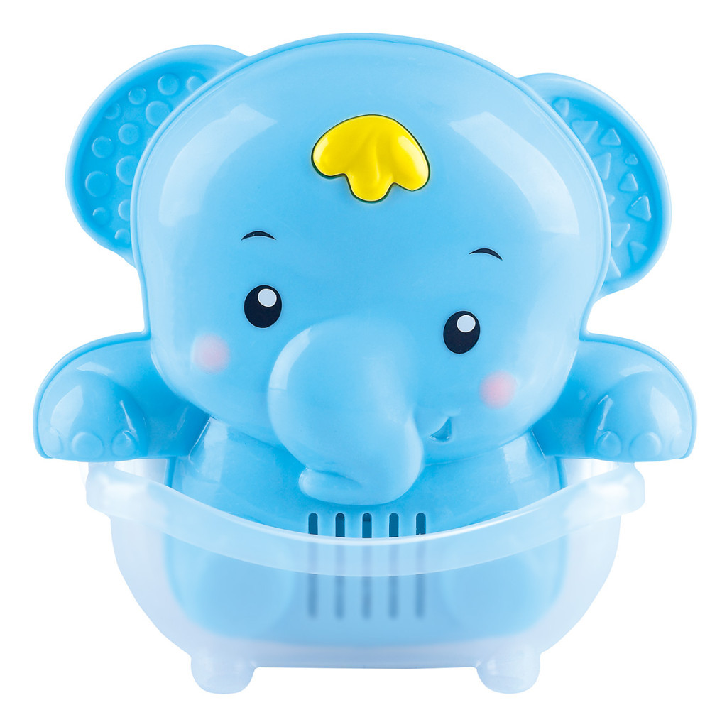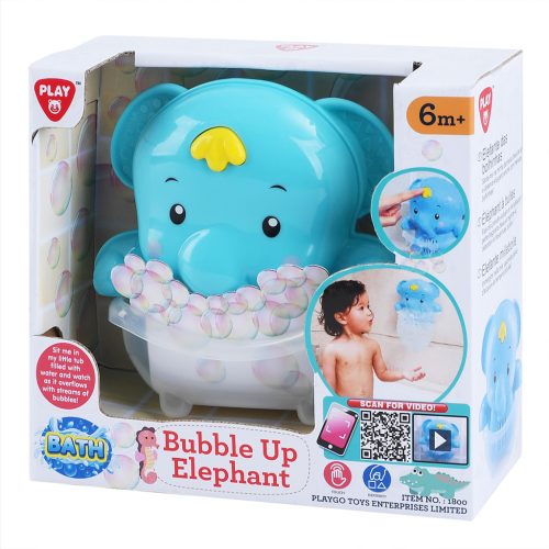 Az elefánt kis műanyag kádjának hátoldalán kettő darab tapadókorong található, mellyel könnyedén a csempére vagy a kád szélére rögzíthető. A műanyag kis kád szappanos oldattal történő feltöltését követően az elefánt a kádjába helyezve, bekapcsolva apró buborékokat kezd el kifújni az ormánya alatt található réseken keresztül. A buborékok összeállva habot képeznek mely habfüggönyként hömpölyög ki a kis elefánt kádjából, így szórakoztatva a kisgyermeket. Az elefánt a homlokán található sárga kis gombbal kapcsolható be és ki. A játék a működéséhez szükséges 2db "AA" elemet nem tartalmazza.