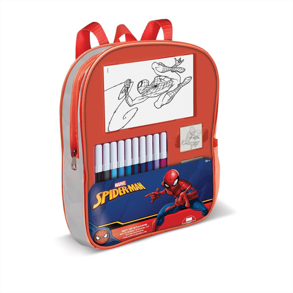 Ez a Pókemberes hátizsák egy praktikus csomag, hiszen a gyerekek könnyen magukkal vihetik a kreatív szettet. A szett színes filceket, nyomdát és színezőt is tartalmaz.