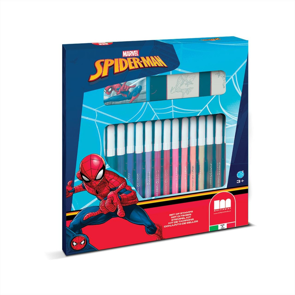Ez a Pókemberes készlet két darab nyomdát, egy nyomdapárnát és 16 színes filcet tartalmaz a mese meghatározó színárnyalataival.