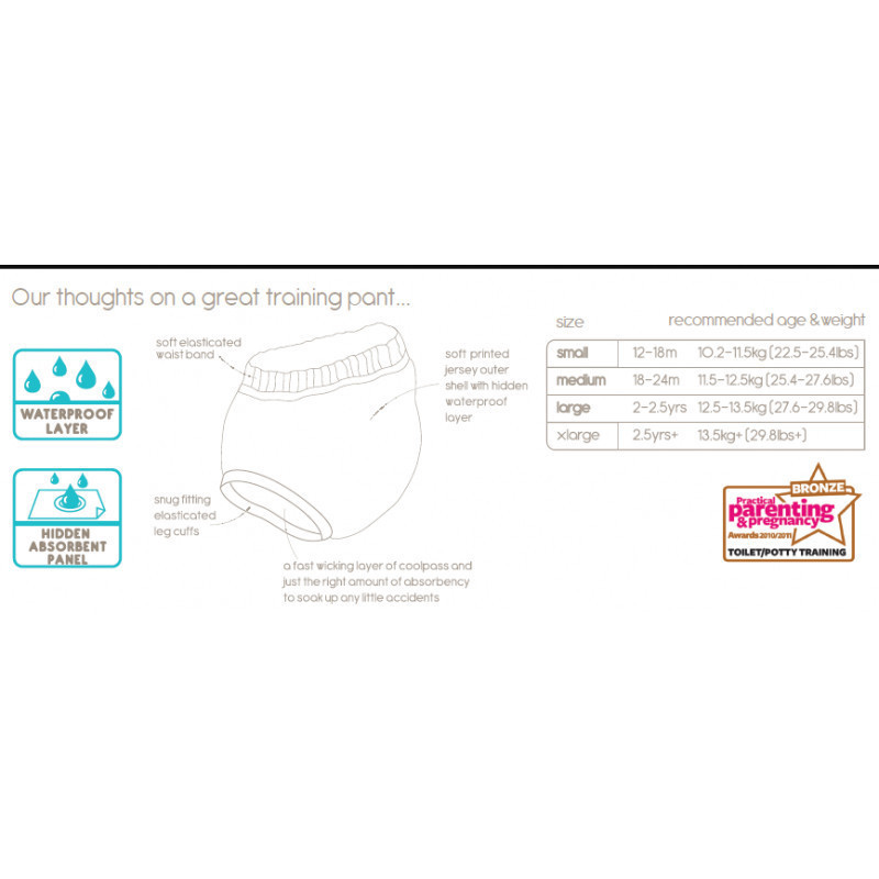 A Pop-in egyedi tervezésű leszoktató pelenkái hatalmas segítséget nyújtanak a szobatisztává válás rögös útján. Kialakítása akárcsak egy alsónadrágé, könnyedén fel- és lehúzható. Esetleges baleset estén egy kis nedvességérzete lesz a gyermeknek, felgyorsítva ezzel a szobatisztulás folyamatát.