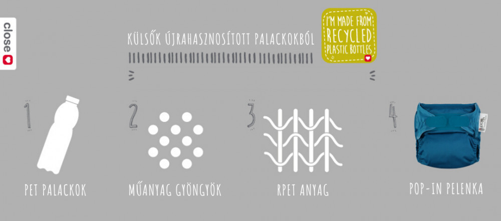 A Pop-in pelenkái környezettudatosan, újrahasznosított RPET anyagból készülnek.