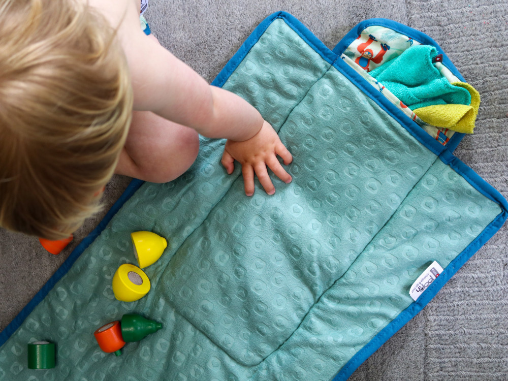 Kétoldalas, szuper puha, gyorsan száradó pelenkázó alátét praktikus tároló zsebbel ellátva. Tekerd fel és vidd magaddal bárhová! Kialakításának köszönhetően, akár egy kistáskában is elfér és megkönnyíti a pelenkacserét legyetek bárhol.