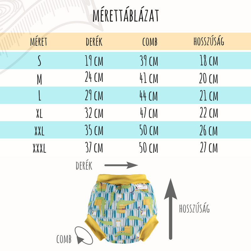 Méret: Mérd le a baba combját és derekát! A Pop-in különleges vízzáró rendszerének köszönhetően, comb és derékgumírozása kevésbé rugalmas, mint egy átlagos úszóbugyinak. A mérethiba miatti cserék elkerüléséért, kérünk, hogy rendelés előtt mérd le babádat és bizonyosodj meg a helyes méretről.