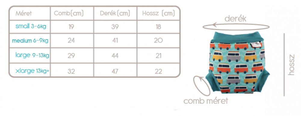 • Mosható és újrafelhasználható úszópelenka.