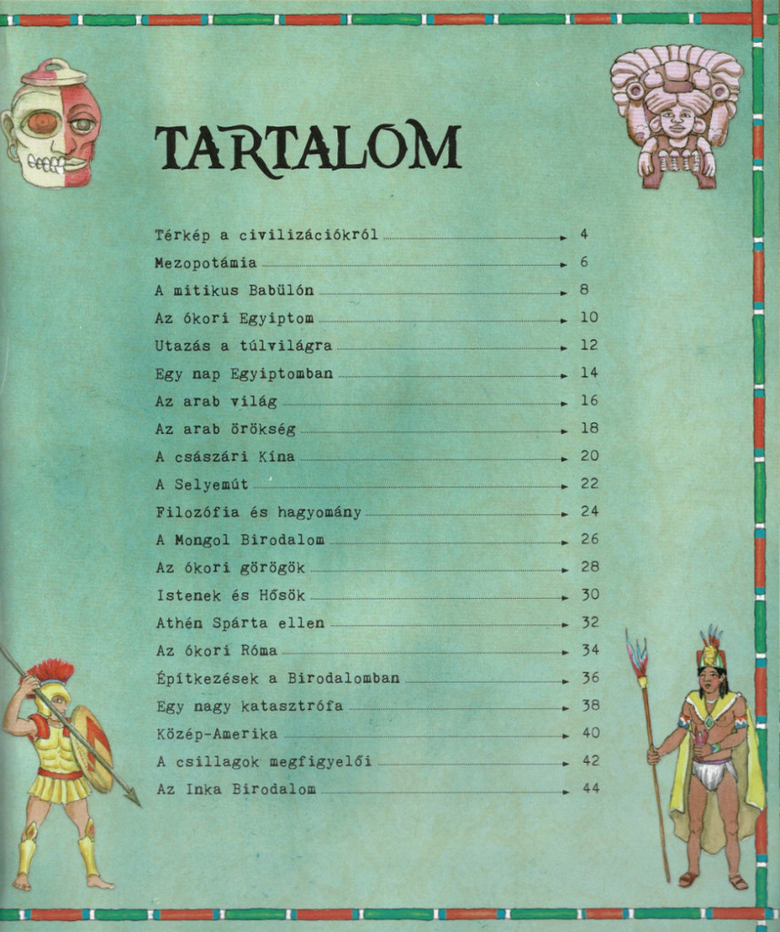 A Régi civilizációk története egy igazi kincsesláda azok számára, akik érdeklődnek a világ történelme iránt. A könyv izgalmas módon mutatja be az emberiség fejlődésének legnagyobb állomásait, kezdve Mezopotámiával, a civilizációk bölcsőjével, ahol az írás, a mezőgazdaság és a kerék találmánya megszületett. A kötet továbbvezet Egyiptomba, a piramisok és a fáraók földjére, ahol az emberi kreativitás és vallás összefonódott a halhatatlanság keresésében.