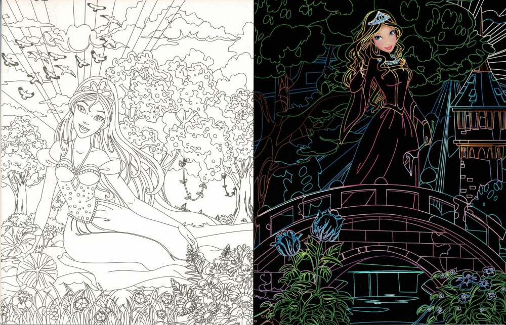 Fedezd fel a hercegnők csodálatos világát! A mellékelt pálcával kapard le a fekete réteget, és meglátod, milyen csodás, színes világ tárul eléd a lapokon! Emellett a színezésre váró oldalakon te magad is létrehozhatod a saját verziódat. Ha kész a mű, akár ki is emelheted a lapot, és odaadhatod egy barátodnak...