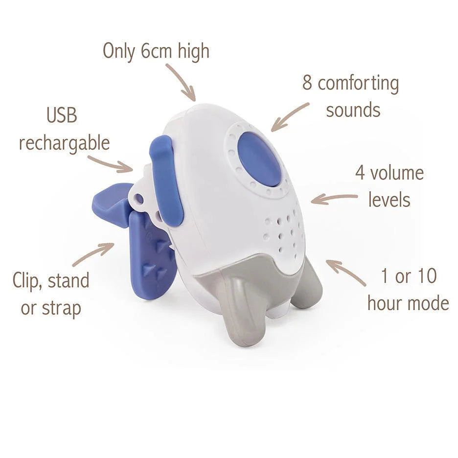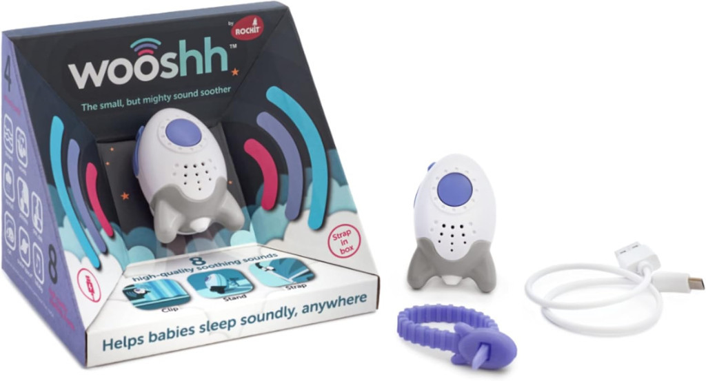 A Woosh egy rendkívül praktikus és hatékony eszköz, amely segíthet a babádnak nyugodt és pihentető alvást biztosítani. Kompakt méretének köszönhetően mindössze 6 cm, így bárhová könnyedén elfér, és a csiptetőjének hála akár az ágy rácsára, babakocsira vagy más helyekre is rögzíthető. A készülék 8 különböző nyugtató hangot kínál, amelyek segítenek a baba megnyugtatásában és elaltatásában.