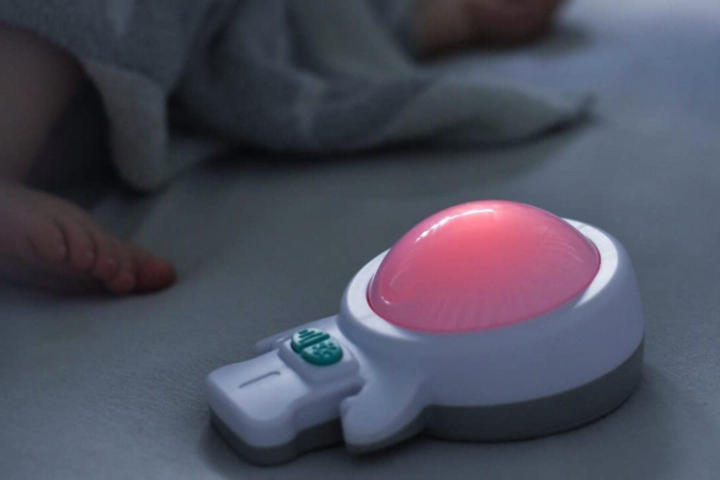 A Zedhez egy nyugtató, piros éjszakai lámpát adtunk, mert a vörös fény köztudottan segít a babák ellazításában és elősegíti a melatonintermelést – egyre mélyebb alvásra ösztönöz.