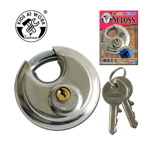 Edzett, rozsdamentes acélból készített, masszív, szépen formatervezett, erős függőzár. 2 kulcs van hozzá.