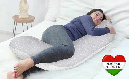 C alakú párna, szürke-fehér, szívecskés mintávalLittleHeartWhiteGreyMérete: 145×65 cmA termék két teljesen különálló belső és külső huzattal készül: * Egy mikrofiber belső huzat, ami 100% poliészter - magas hőfokon mosható,akár töltelékkel együtt is.* Cipzárral van ellátva, mely lehetővé teszi a töltelék szabályozását * A töltet szilikonizált poliészter, antiallergén és Oeko-tex tanúsítvánnyal rendelkezik. * Ez a töltet fajta lényegesen erősebb tartást biztosít. A hagyományos polisztirol gyöngy golyóval ellentétben a szilikonizált poliészter csendes, nem zörög, "zsizseg" * A külső huzat 100% pamut és szintén Oeko-tex minősítéssel rendelkezik.