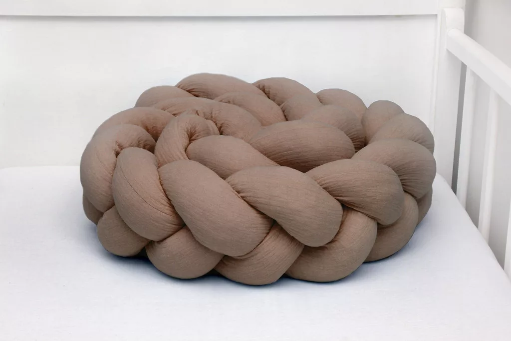 Magassága: kb 16-17 cm.Alapanyag: - Huzat: 100% pamut un. muszlin alapanyag- Töltet: 100% szilikonizált poliészterMindkét alapanyag Oeko-tex minősítésű.A fonott rácsvédők mosógépben moshatók, kímélő programon: 30-40 fokon.A végeket érdemes mosásnál rögzíteni (biztosítótűvel), hogy ne jöjjenek szét.Szárítógépes szárítás, és vegyi tisztítás nem ajánlott!