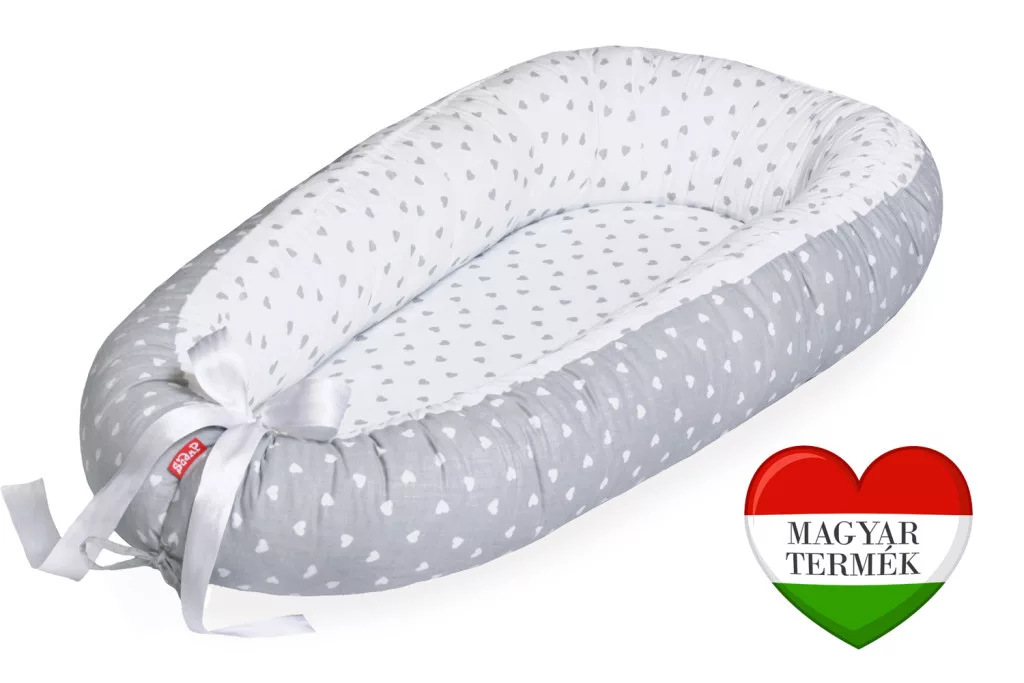 Scamp babafészek - kókuszbetétes /LittleHeartWhiteGray (Szives)