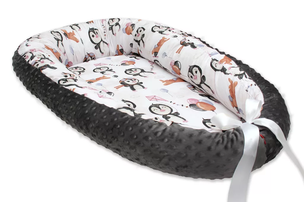 Scamp minky-vászon babafészek /PenguinPink