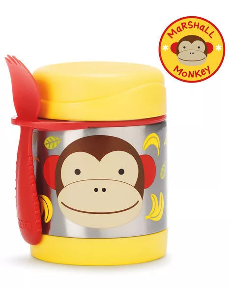 Hordozható termosz aranyos Zoo mintákkal. Multifunkciós evőeszköz tartozik hozzá, amit kanálként és villaként egyaránt használhatunk. A hideg italt, babaételt 5 óránál, a meleget 7 óránál tovább tartja meg.