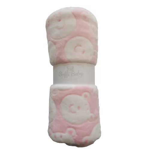 Soffi Baby takaró plüss dupla 75x100cm - rózsaszín fehér macipofi