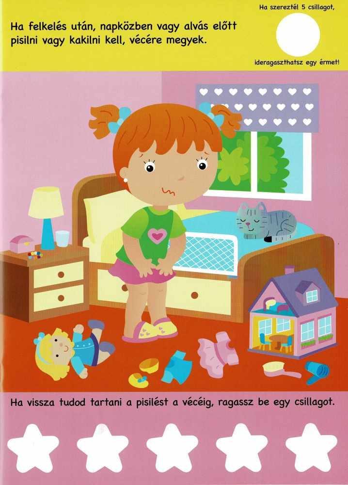 Ragassz be egy csillagot, ahányszor csak sikerül valamit egyedül megoldanod. Ha összegyűjtöttél 5 csillagot, kiérdemelsz egy érmet. Ha minden feladatot teljesítettél, elnyered a kupát! Sok szerencsét, Te már olyan nagy vagy, hogy egyedül mehetsz vécére.