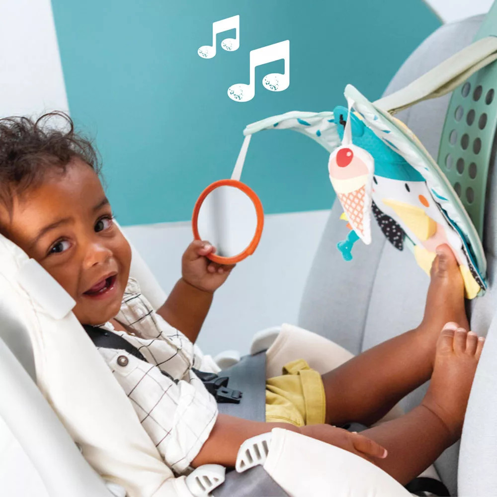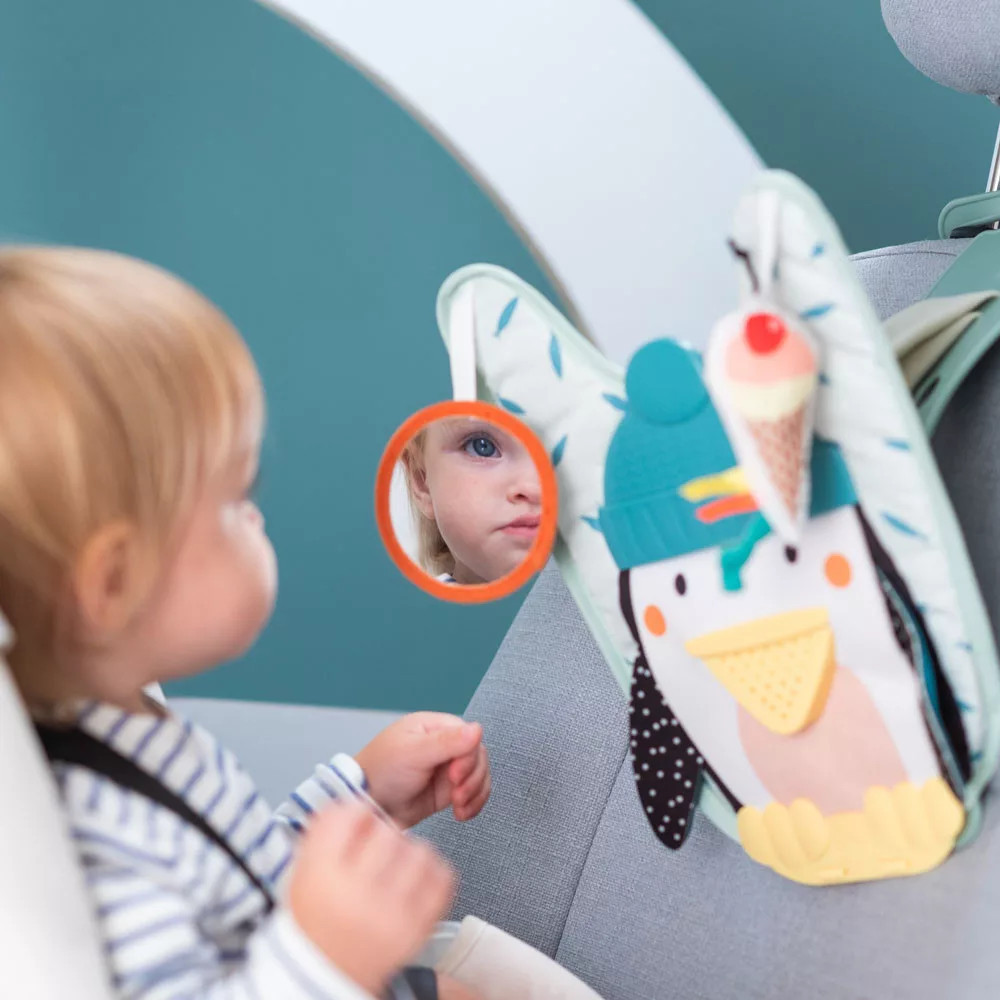 A Taf Toys zenélő pingvines autós játék a hátrafelé utazó babák kedvenc útitársa. A puha, színes panel a baba lábának rugdosására zenélni kezd, így szórakoztat, miközben megtanítja az ok-okozati összefüggésekre is.