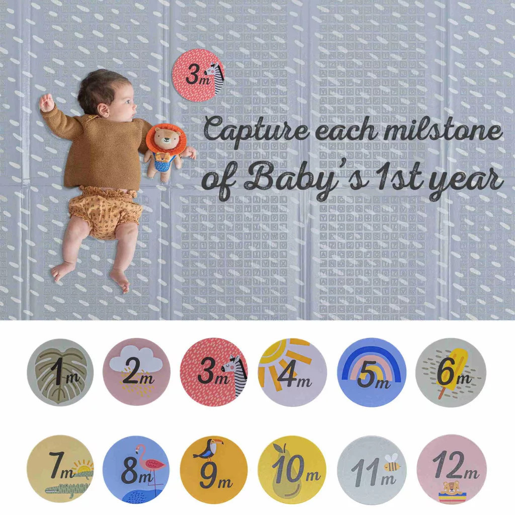 • Ez a gyönyörű szőnyeg 6 db kétoldalas kártyát tartalmaz 12 hónapra – korhű mérföldkövek