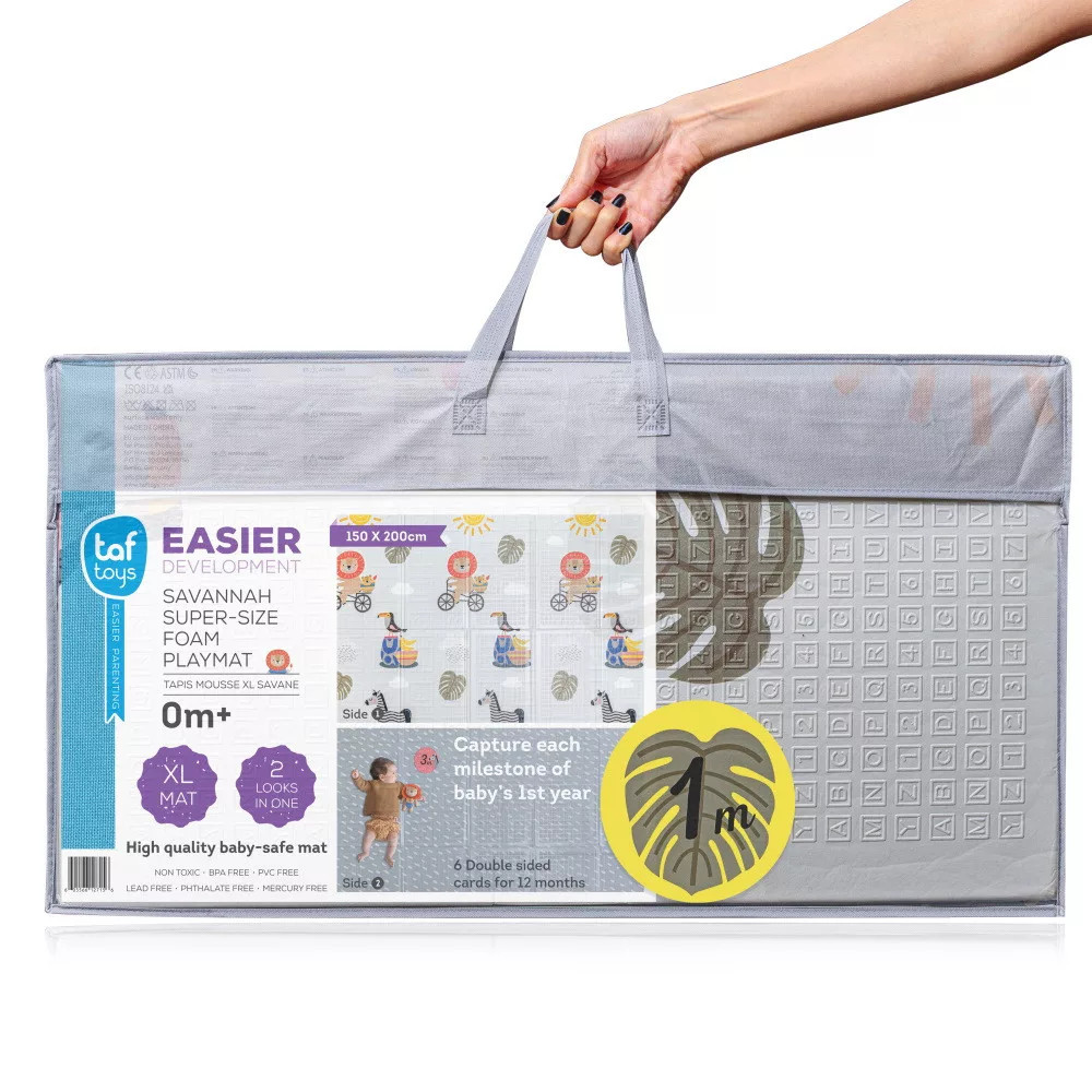 Tágas, kényelmes és biztonságos hely a baba mozgásához, játékához és fejlődéséhez. A Taf Toys Szavanna szivacs játszószőnyeg egy igazán stílusos és praktikus kiegészítő, amit imádni fogtok – nemcsak a baba, hanem a szülők is!
