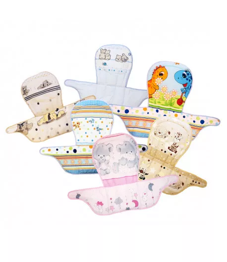 A Timba etetőszékhez készített textilbetét, 2 oldalán tépőzáras, ennek a segítségével rögzíthető a székhez.