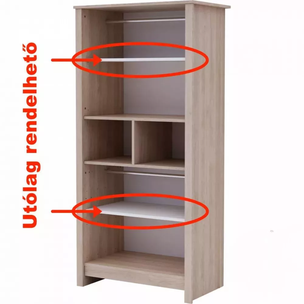 Dobd fel a nagyszekrényed belső tereit ezzel a praktikus polccsomaggal, mely letisztult és stílusos. A 2 extra polccal könnyedén rendszerezheted a ruhákat, játékokat vagy kiegészítőket az akasztós-zárt részen.