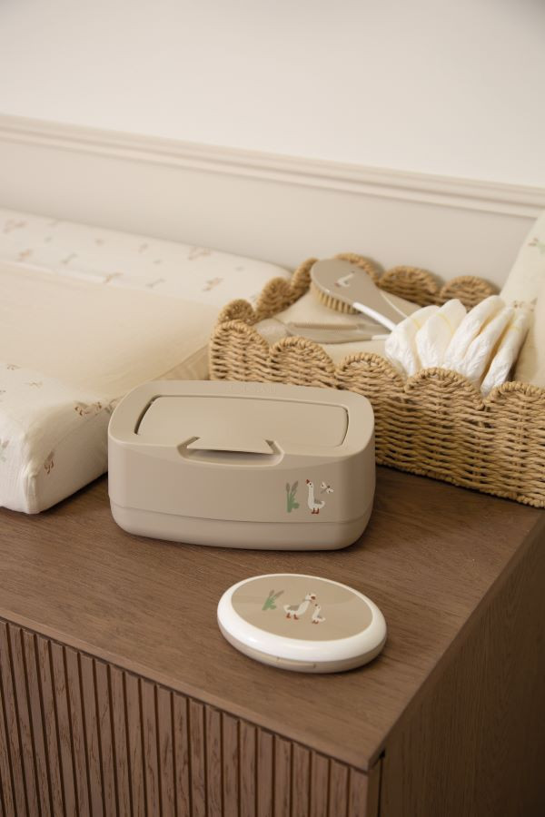 Egyedi és dekoratív doboz nedves törlőkendők tárolására, kiszáradás elleni védelemmel. A Bébé-Jou törlőkendő doboz egy kézzel könnyen kinyitható és zárható.