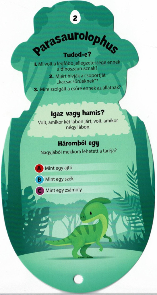A dinoszauruszok világa a gyerekek képzeletét minden korban megmozgatja. Ezek az ősi, titokzatos lények nemcsak lenyűgöző méreteik és formáik miatt érdekesek, hanem azért is, mert a történelmük a Föld több százmillió éves múltját tárja fel előttünk. A „Tudod a választ? – Dinoszauruszok” kártyacsomag egy szórakoztató, ismeretterjesztő játék, amely 46 dinoszaurusz és őslény világát mutatja be kérdéseken, feladványokon és meglepő tényeken keresztül.