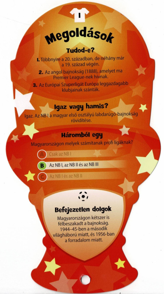 Ezen felül minden kártyán található egy érdekesség vagy kiegészítő információ, amely még jobban elmélyíti a tudást – legyen szó történelmi tényről, sztárokról, stadionokról, rekordokról vagy trófeákról.
