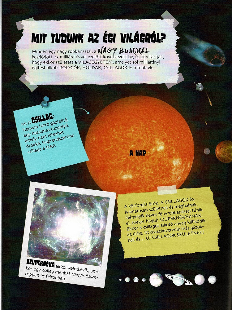 Különleges élmény vár ebben az albumban: egyrészt rengeteg olvasnivalót találhatsz a lapokon a Naprendszerről, az égitestekről és az űreszközökről, az űrkutatásról. Ugyanakkor az olvasgatás mellett egy kis feladat is vár a kötetben: neked kell megtalálni és beragasztani a helyükre az első oldalakon található matricákat, így a te közreműködéseddel lesz teljes ez az album.