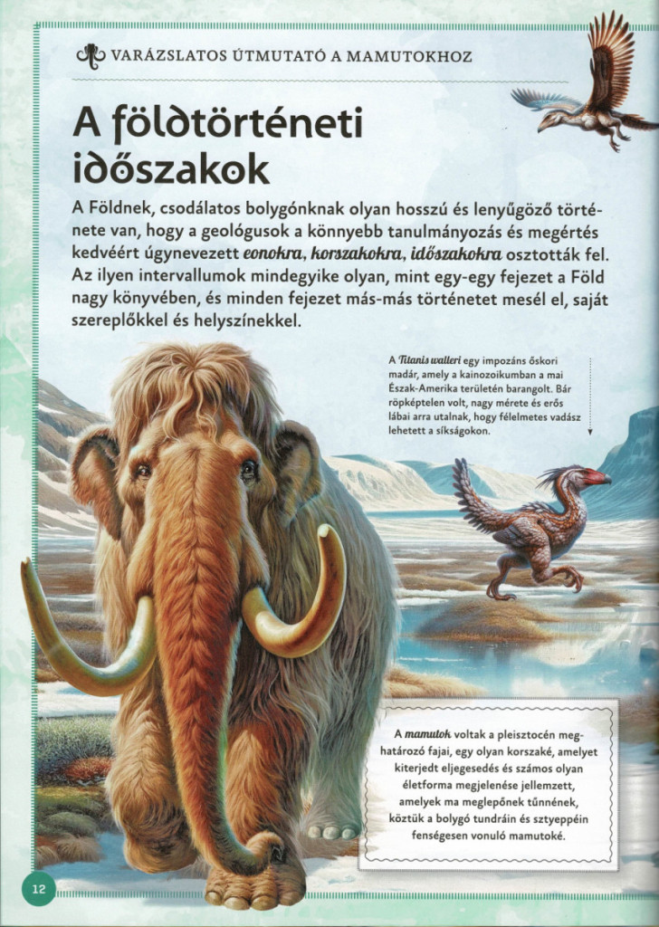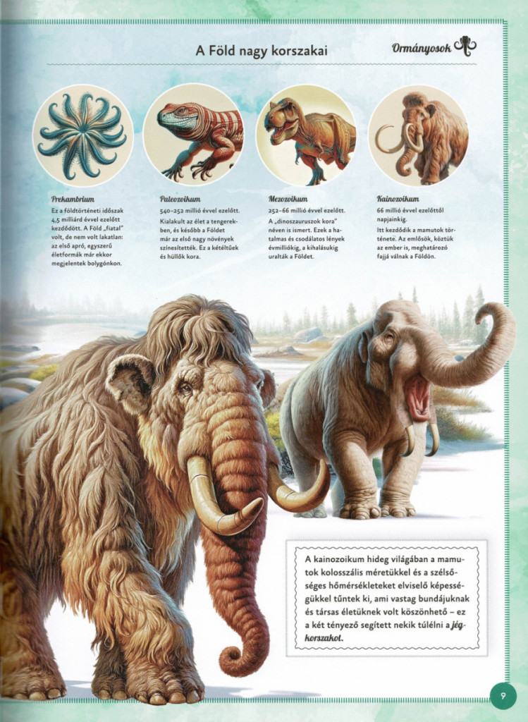 A könyv képzeletbeli idegenvezetője egy mókás karakter, aki nemcsak végigkalauzol a mamutok világán, hanem történeteket mesél, magyaráz és közben megannyi érdekességgel szolgál. Ez nem egy száraz lexikon: ez egy élő, lélegző kaland, ahol a tudomány és a fantázia kéz a kézben jár.