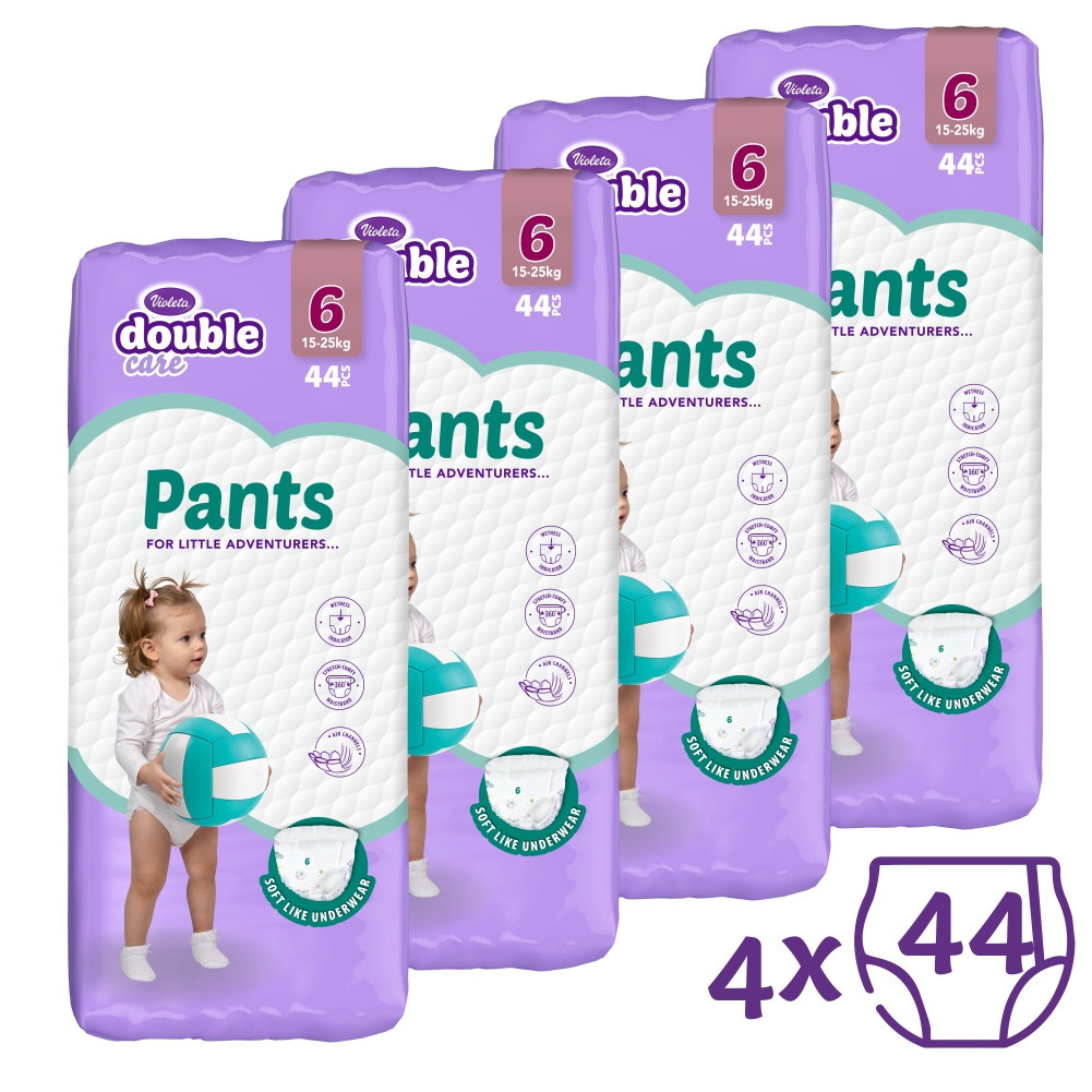 Pelenkacsomag - 4 x 44db - Prémium minőségű, Double Care Pants bugyipelenka 15-25 kg közötti babáknak a Violetától.