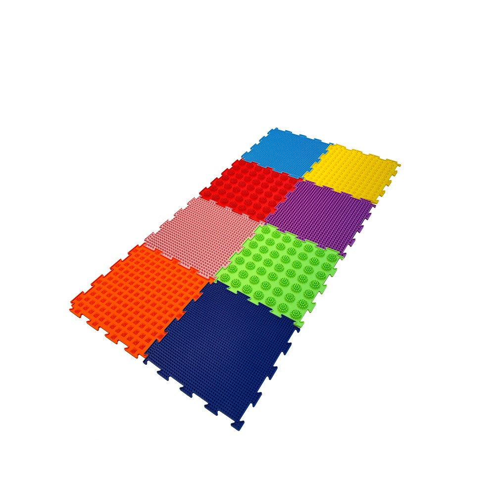 A talpizmok erősödéséhez, ezáltal a megfelelő boltozat kialakulásához fontos az egyenetlen talajon járás, de ezt sajnos városi körülmények között nehéz megvalósítani, főleg a téli időszakban. Ezen tud segíteni a szenzoros masszázsszőnyeg, ami otthonába csempészi a kavics, a fű, a göröngyös talaj érzetét, így gyermeke bármikor úgy érezheti, mintha a szabadban járkálna. A lapokon lévő mintázat ingerli, és összehúzódásra készteti a talpizmokat, erősíti a boka körüli izmokat, ezáltal fejleszti az alsó végtag stabilitását, valamint korrigálja a rossz testtartást. Vidám színei fejlesztik a színérzékelést, kedvezően hat gyermeke hangulatára. A lapok összeillesztésével és szétszedésével fejlődik gyermeke szem-kéz koordinációja, színérzékelése és kombinációs készsége, javul a manipulációja.