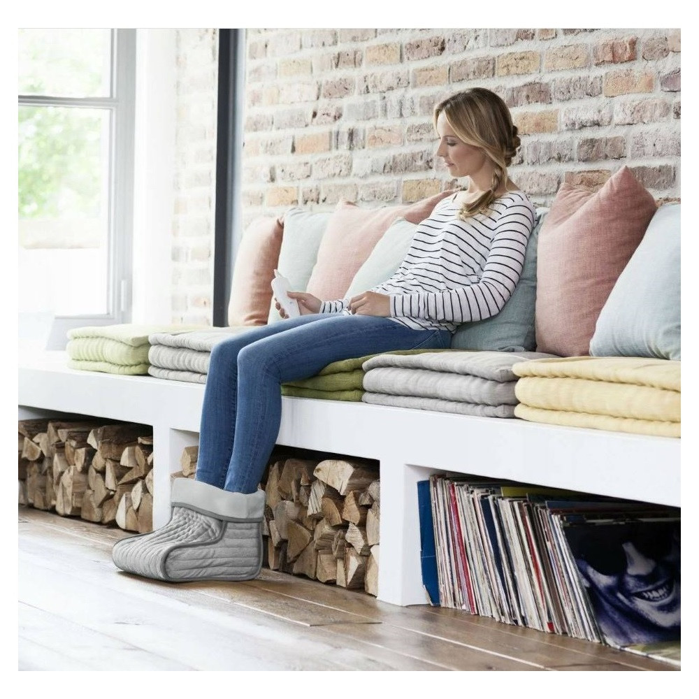Intenzív hőterápia és kényeztető puhaság a fázós lábaknak! A Vivamax elektromos lábmelegítő használatával nem kell többé didergő lábbal TV-t néznie vagy hideg, fázós lábakkal ágyba bújnia. Világító kijelzőjének köszönhetően kezelőfelülete sötétben is jól látható, automatikus kikapcsolás és túlmelegedés elleni védelem funkciója pedig biztonságossá teszi a használatát. Kivehető belső huzata mosható, így könnyedén tisztán tartható. Termékjellemzők: Szabályozható hőmérséklet (3 fokozat) Automatikus kikapcsolás: 90 perc Kivehető, mosható belső huzat Túlmelegedés elleni védelem Távirányító háttérvilágítással Műszaki jellemzők: Teljesítmény: 100 W Feszültség: 220-240 V Frekvencia: 50 Hz Méret: 30 x 30 x 24 cm Szövet anyaga: 100% poliészter